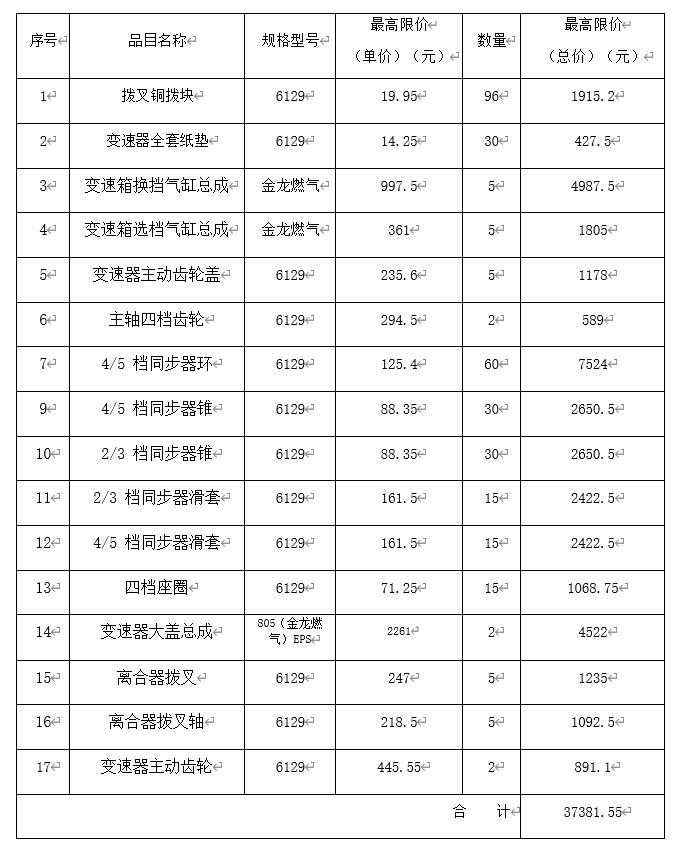 變速箱配件比價(jià)采購公告 一、采購內(nèi)容